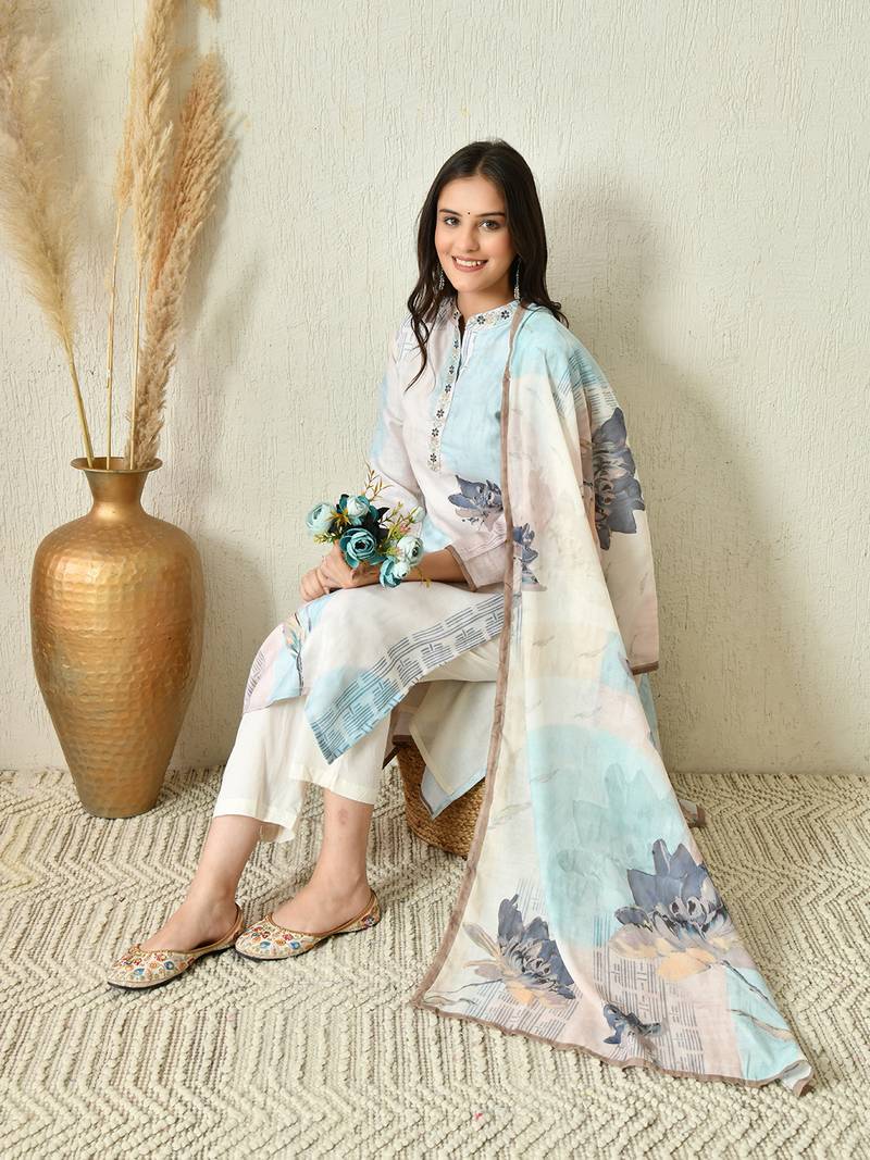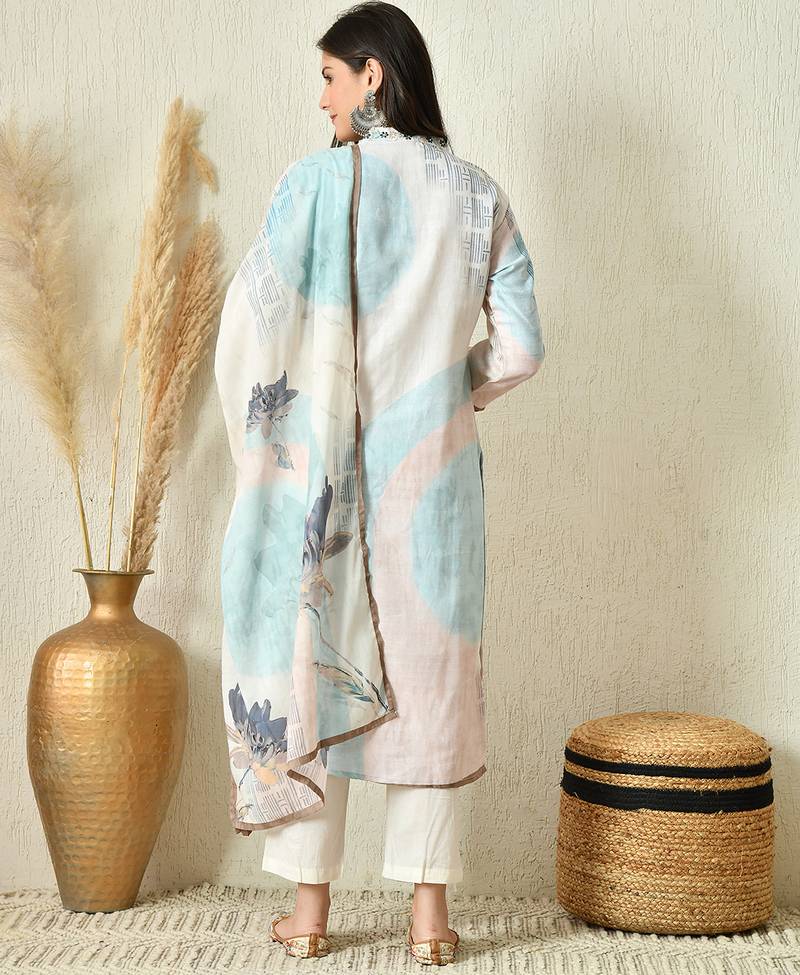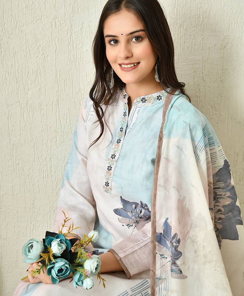 | • | Dupatta | : | Color- Off White / Fabric- Blended Cotton |
