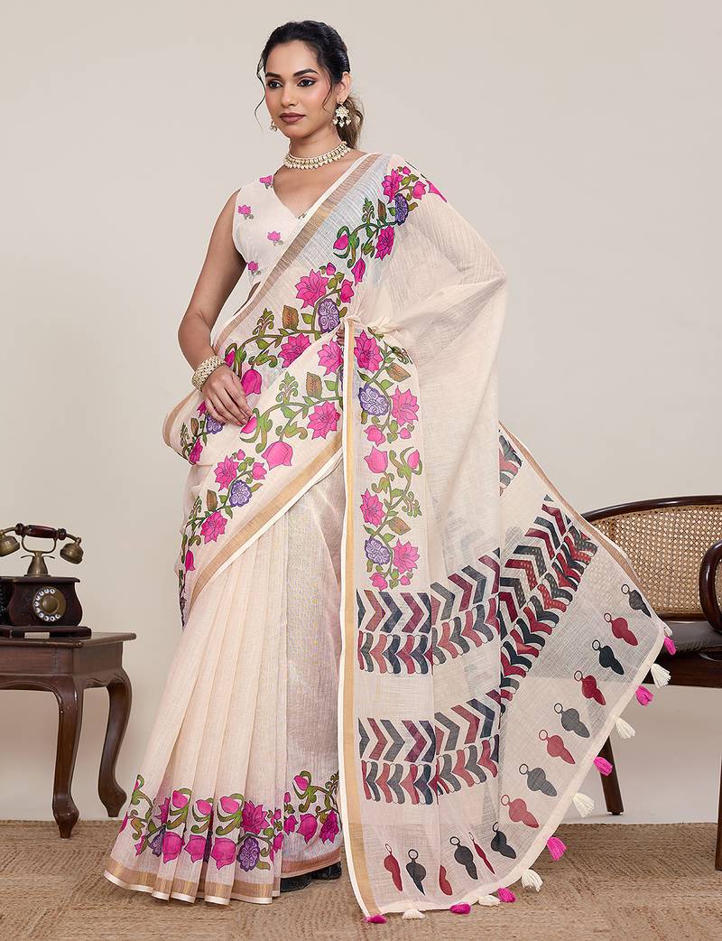 | Product Name | Off White Color Linen Silk Fabric Beautiful Partywear Saree | |