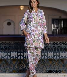 Off white color smart cotton blend fabric designer printed smart co-ord set