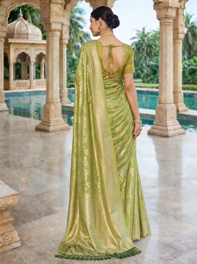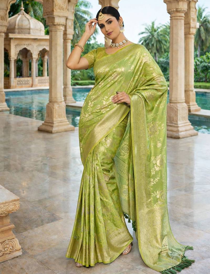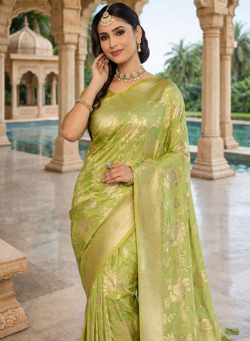 Olive color ethnic crepe silk blend fabric woven jacquard designer ceremonial saree