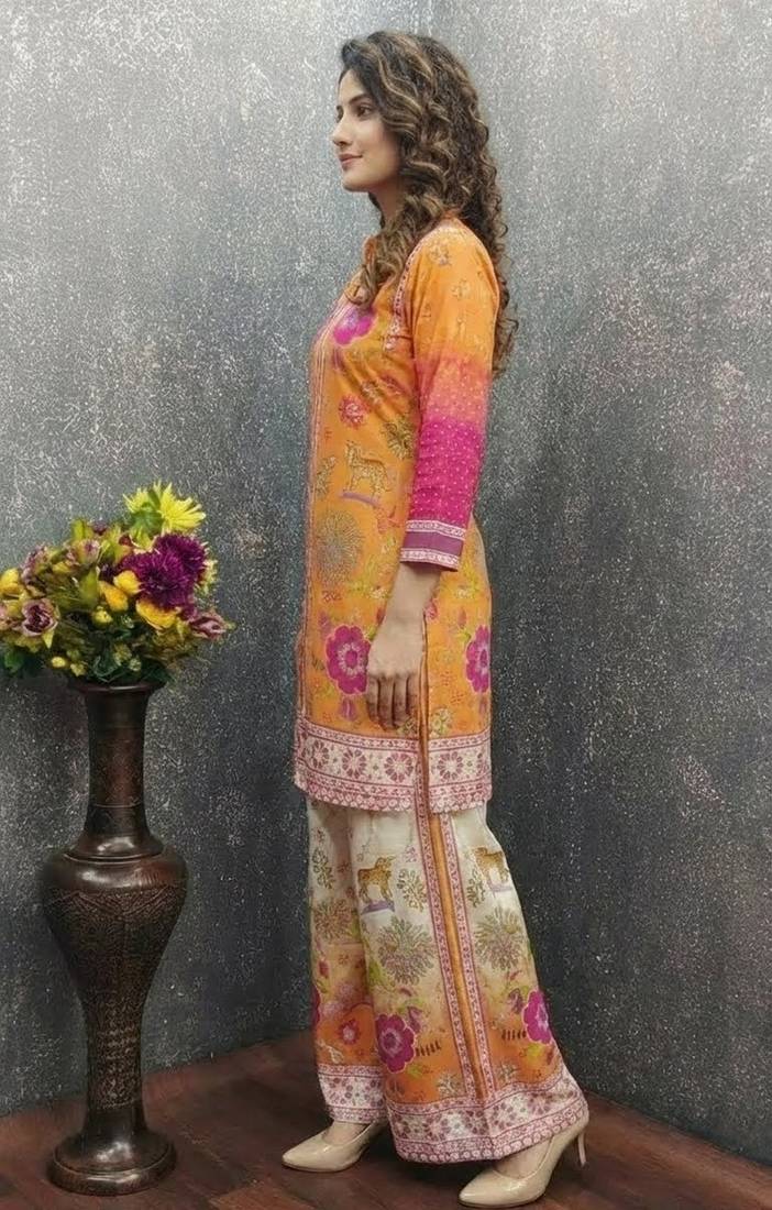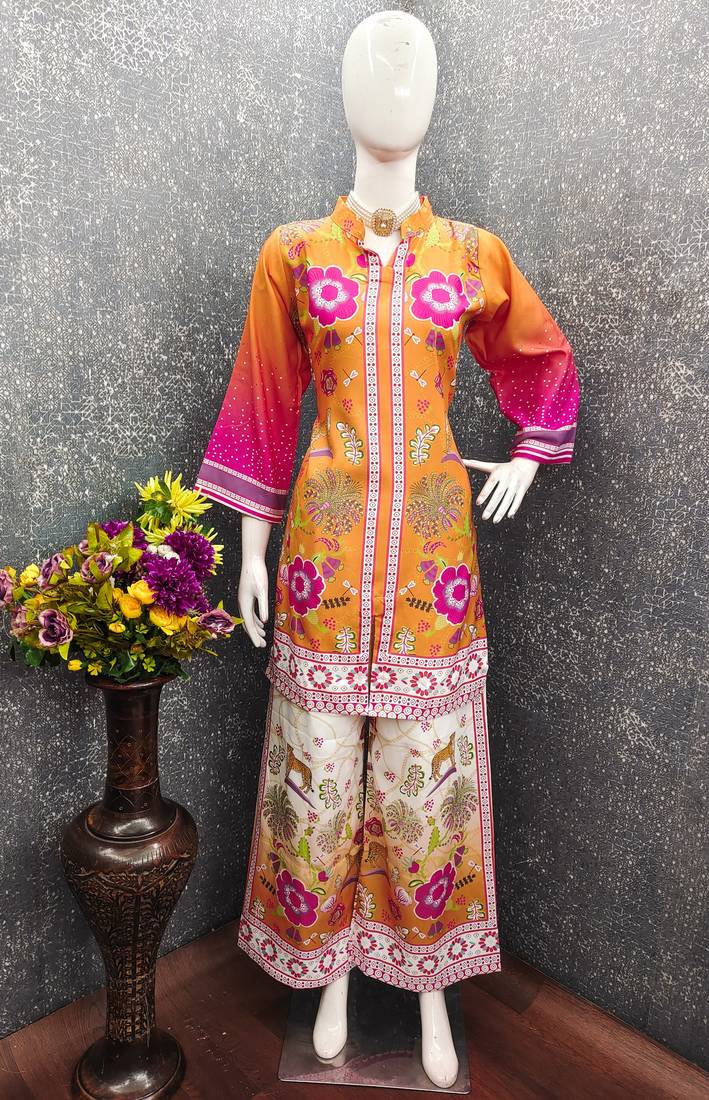 | Product Name | Orange Color Beautiful Bollywood Style Designer Printed Coord Set | |