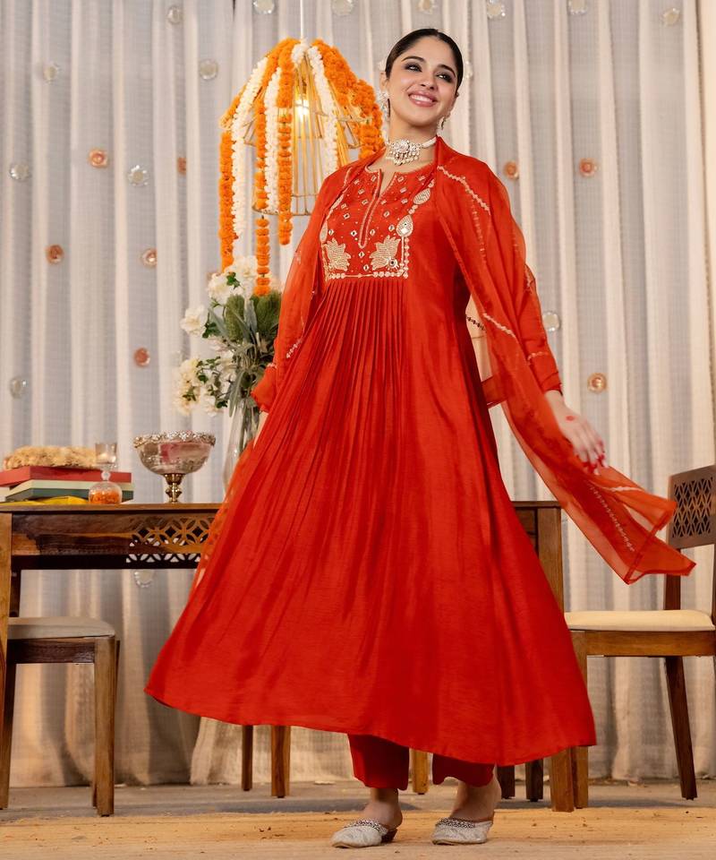 | Product Name | Orange Chanderi Embroidered Kurta Pant Set | |
