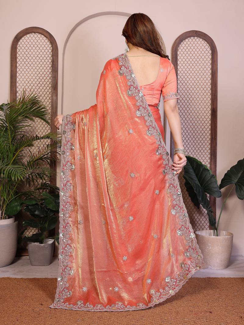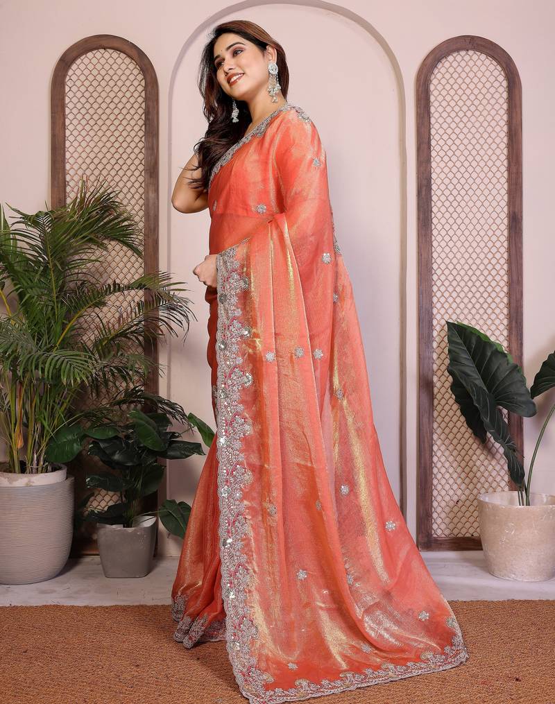 | Product Name | Orange Color Designer Fendy Chiffon Saree For Classy Bollywood Looks | |