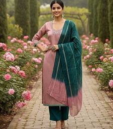 Peach color beautiful ethnic partywear embroidered suit unstitched