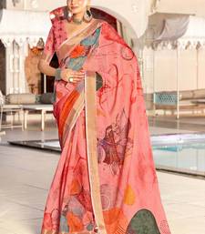 Peach color beautiful linen art silk fabric saree with sophisticated partywear saree