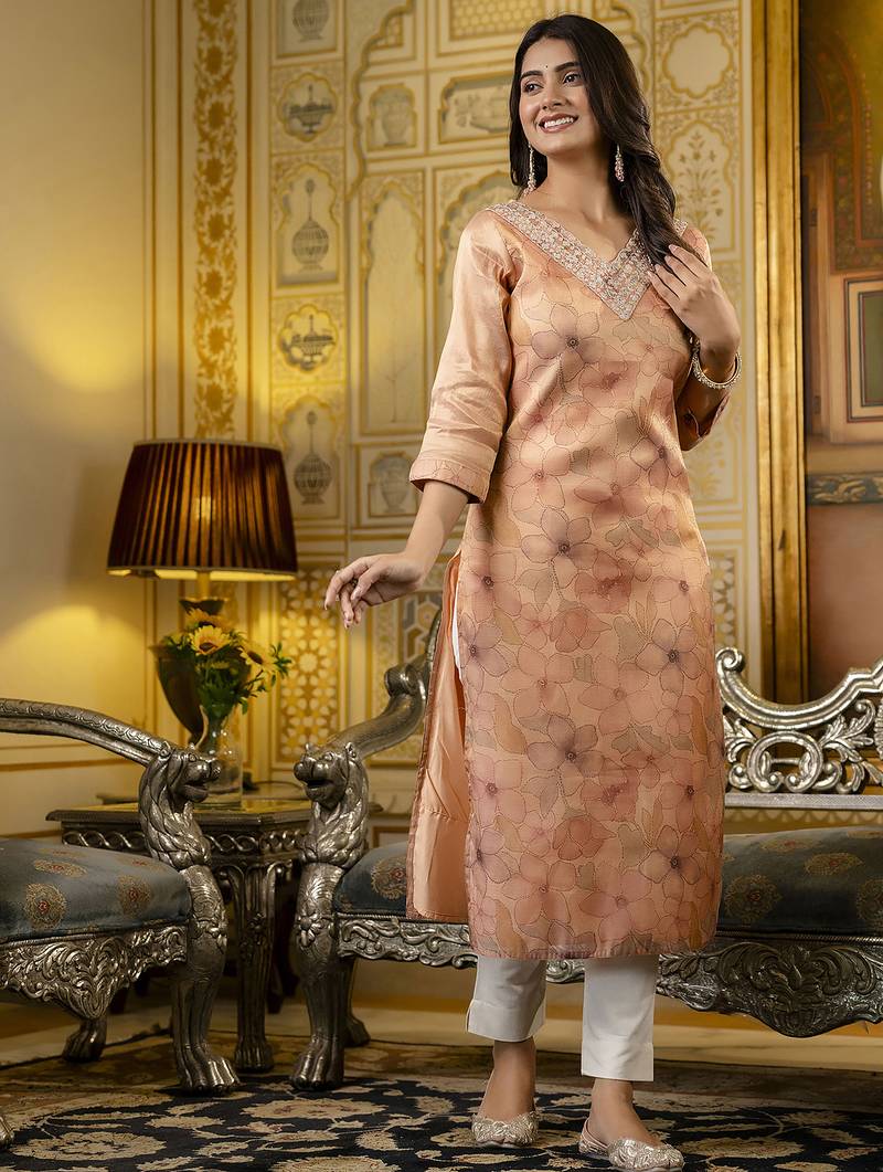 Peach color beautiful silk blend fabric sophisticated kurta for girls