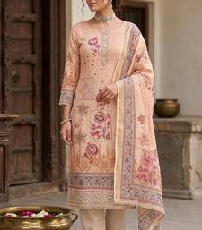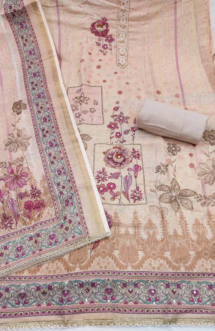 Peach color simmer cotton fabric designer salwar kameez with elegant hand work unstitched