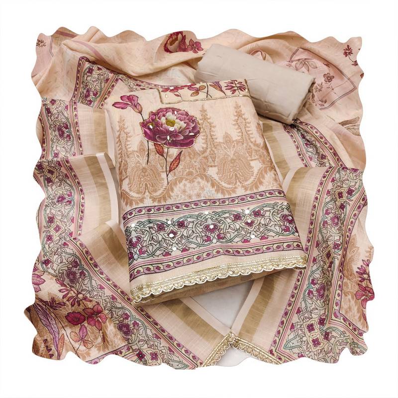 | • | Dupatta | : | Color- Peach / Fabric- Blended Cotton |