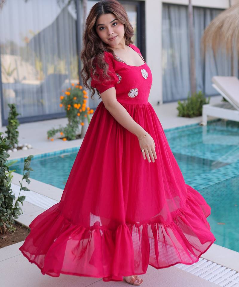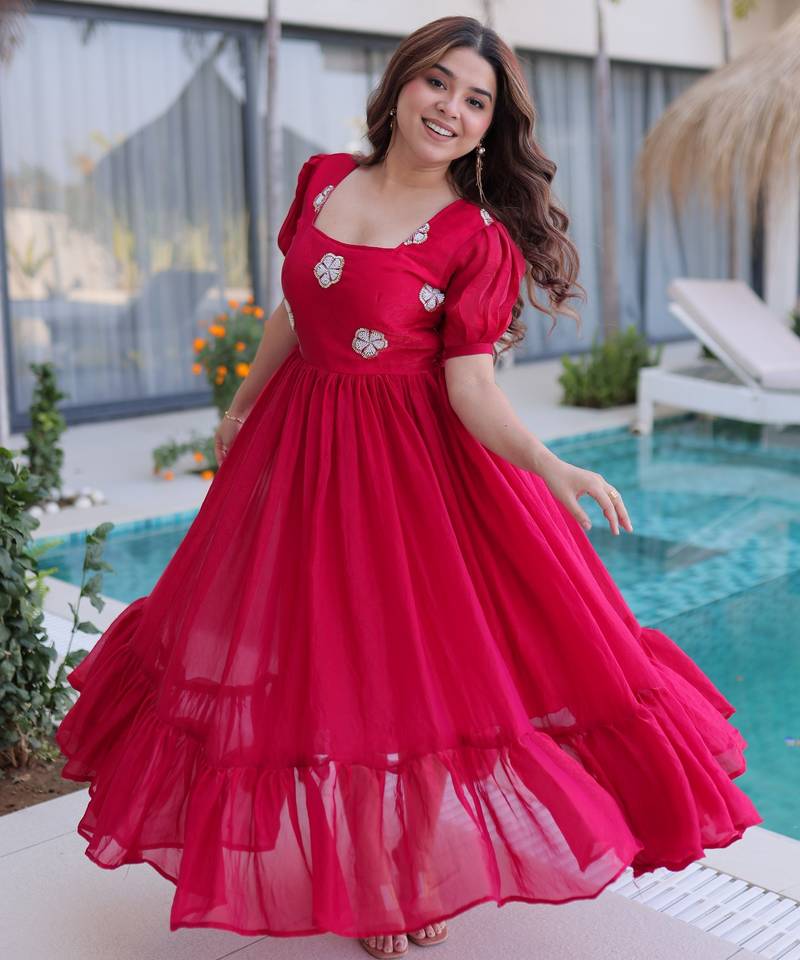 | Product Name | Pink Color Beautiful Ceremonial Fendy Silk Fabric Gown For Party Looks | |