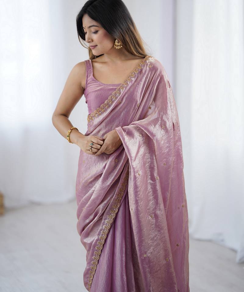 | • | Saree | : | Color- Pink / Fabric- Tissue |