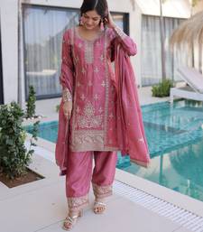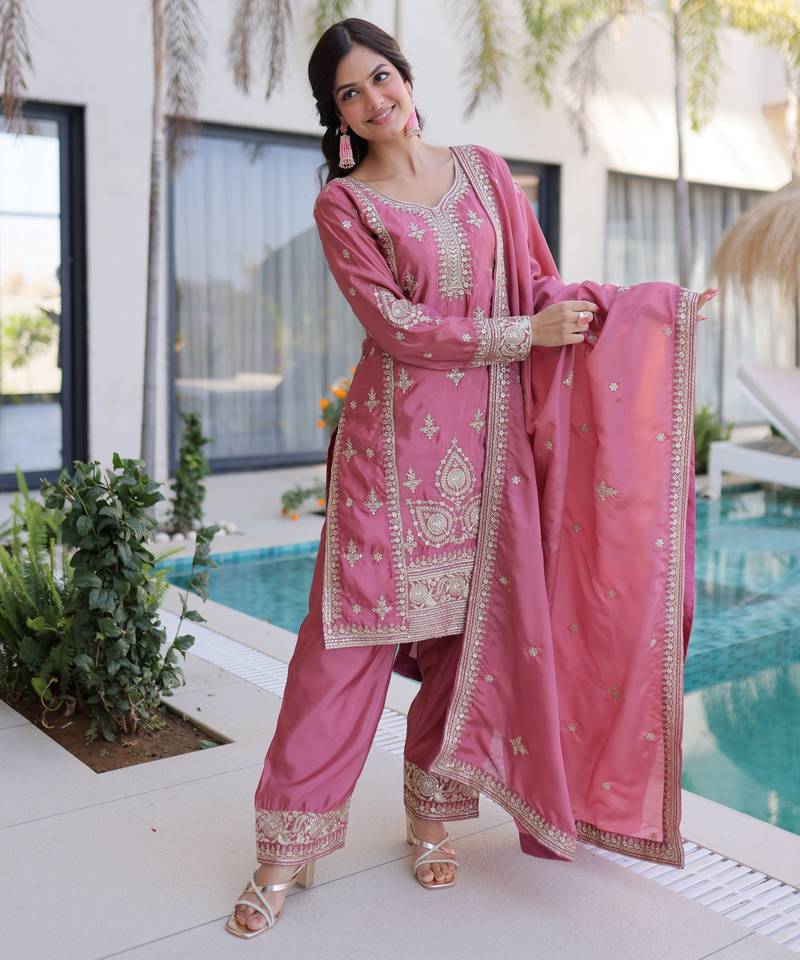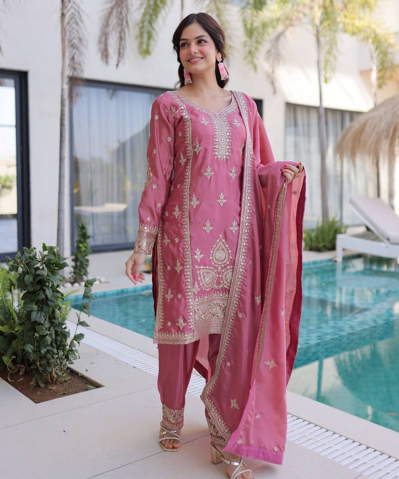 Pink color beautiful ho silk fabric stylish ceremonial attire
