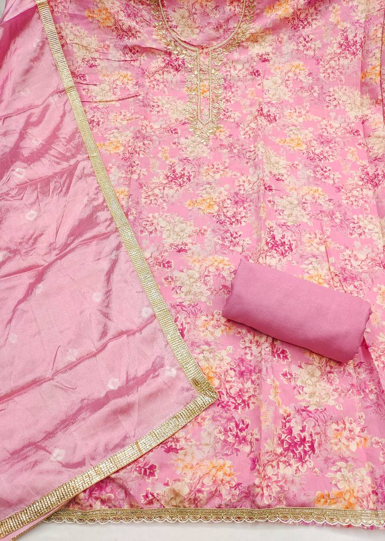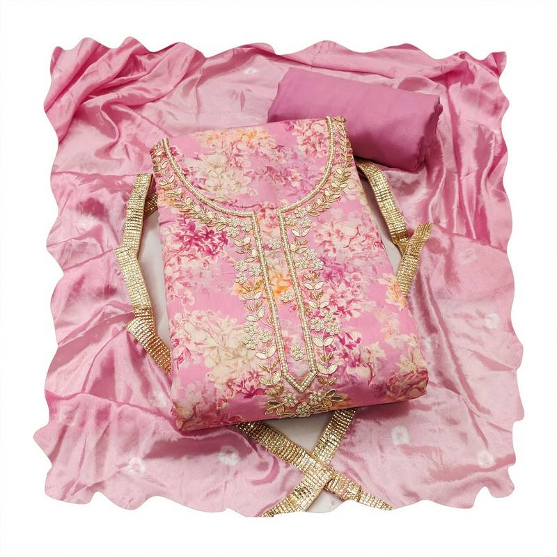 Pink color beautiful printed designer modal silk salwar suit unstitched