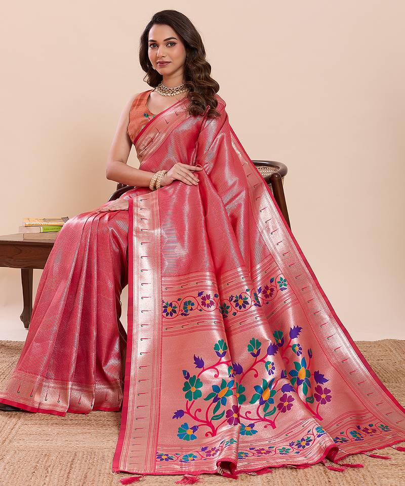 | Product Name | Pink Color Beautiful Soft Silk Blend Fabric Woven Designer Saree | |