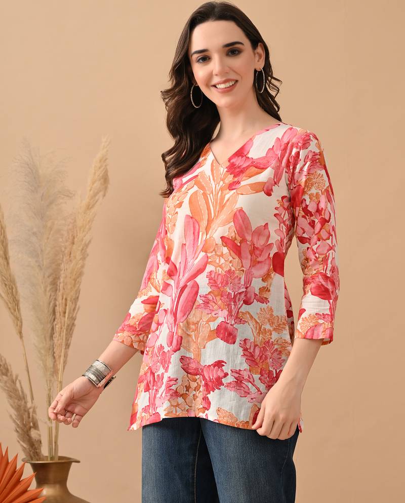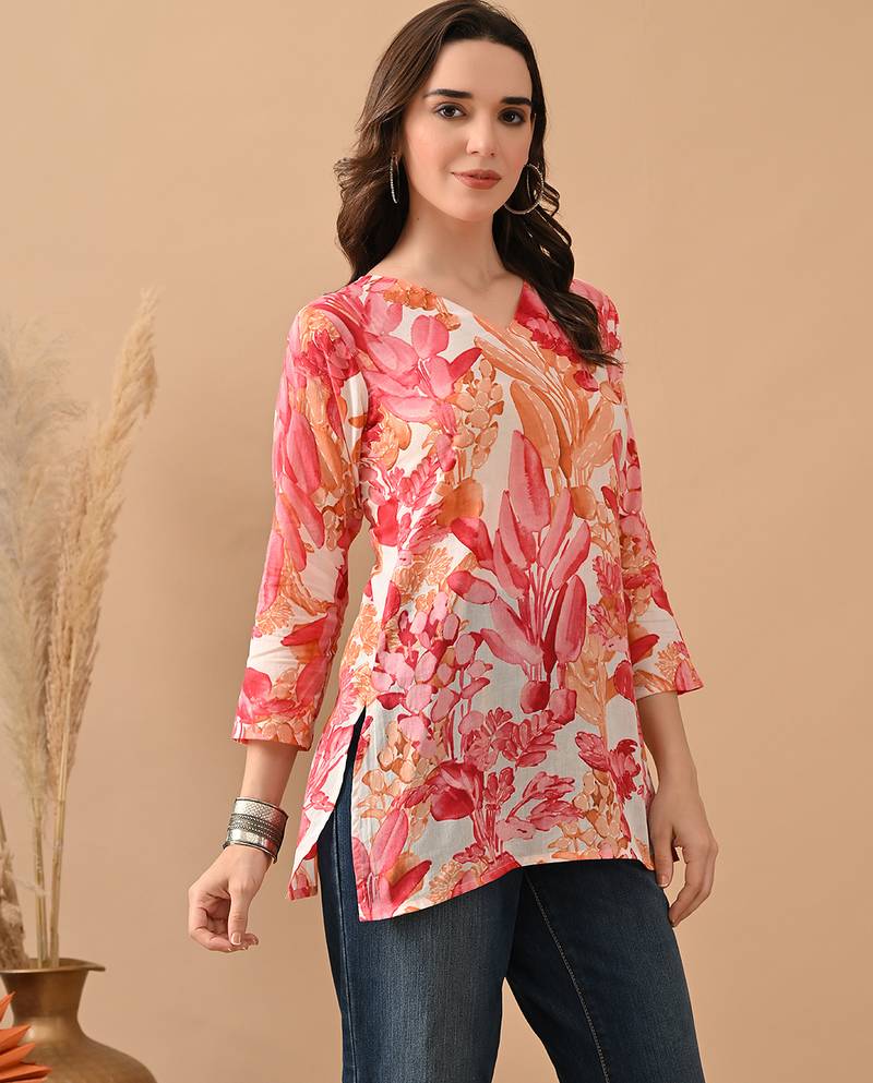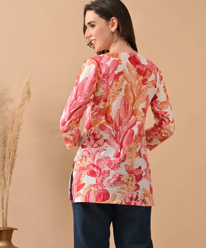 | Product Name | Pink Cambric Cotton Printed Formal Short Kurta | |