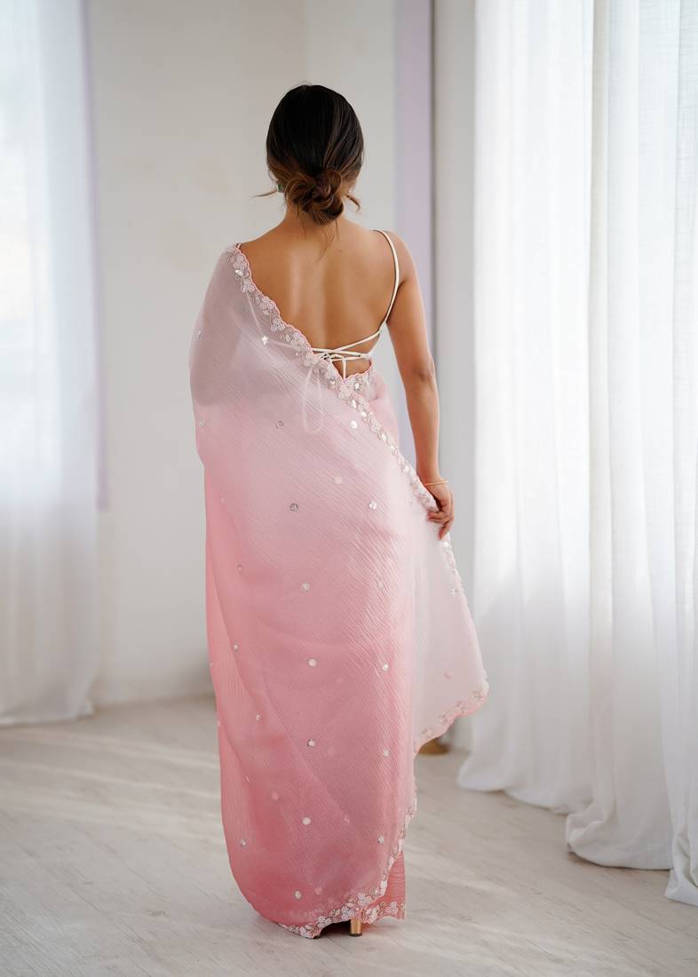 | Product Name | Pink Color Chiffon Crush Fabric Beautiful Sophisticated Work Ceremonial Saree | |
