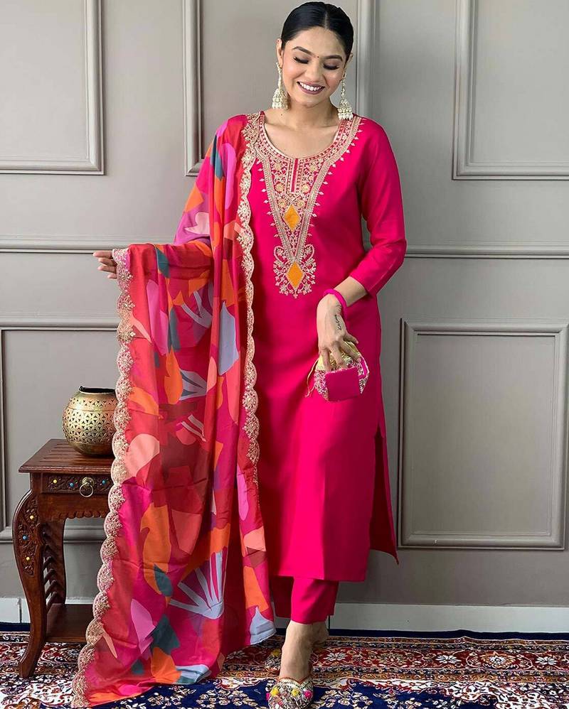 | Product Description | Looking These Suit In Fine Colored Pair With Bottom And Dupatta.These Top Are Cotton And Bottom Are Fabricated On Silk Blend Pair With Cotton Dupatta.Its Beautified With Designer Embroidery Work With Printed. |