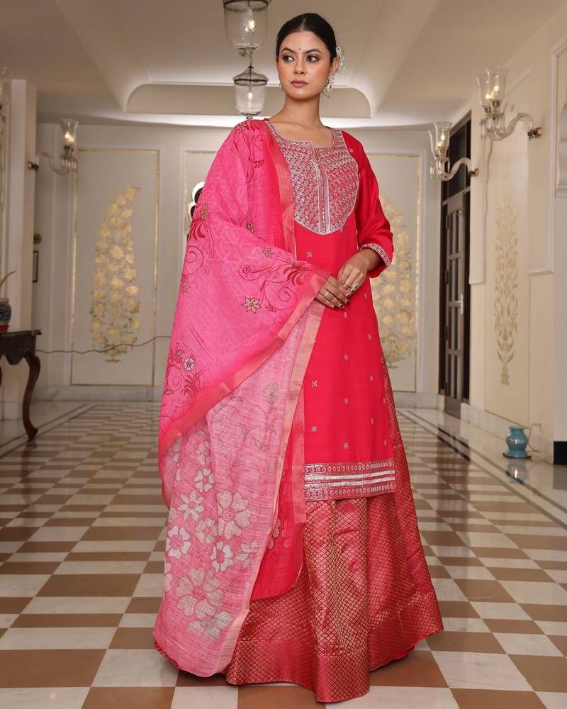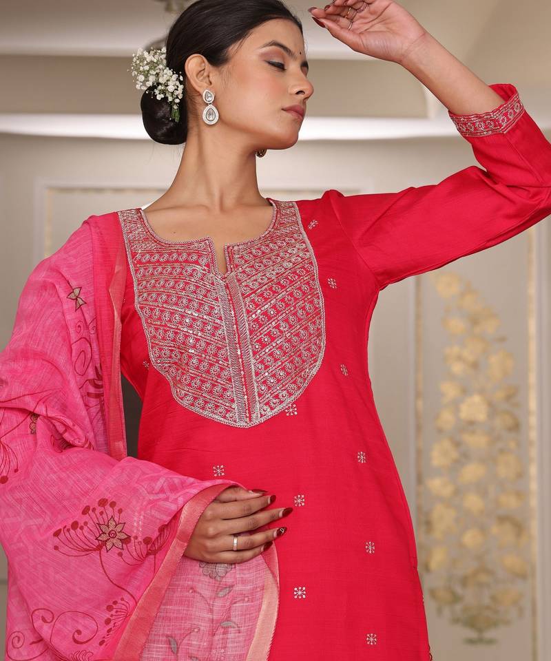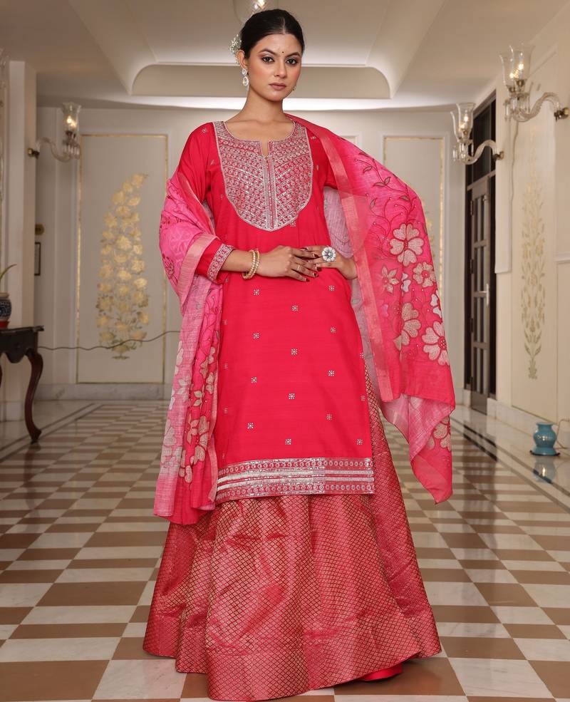 | Product Name | Pink Color Cotton Silk Fabric Embroidered Kurta Set | |