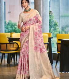 Pink color cotton silk blend fabric woven designer ceremonial saree