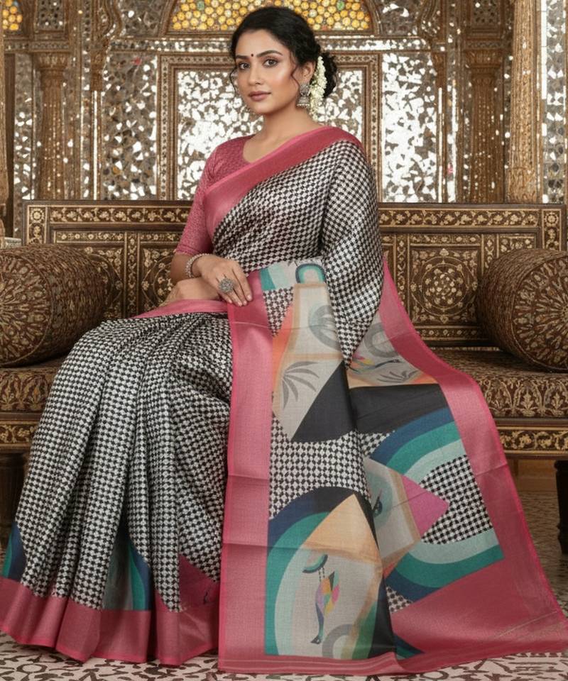 | Product Name | Pink Color Crepe Art Silk Fabric Designer Digital Printed Ethnic Festive Saree | |