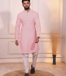 Pink color designer embroidery work ceremonial ethnic kurta payjama for men's