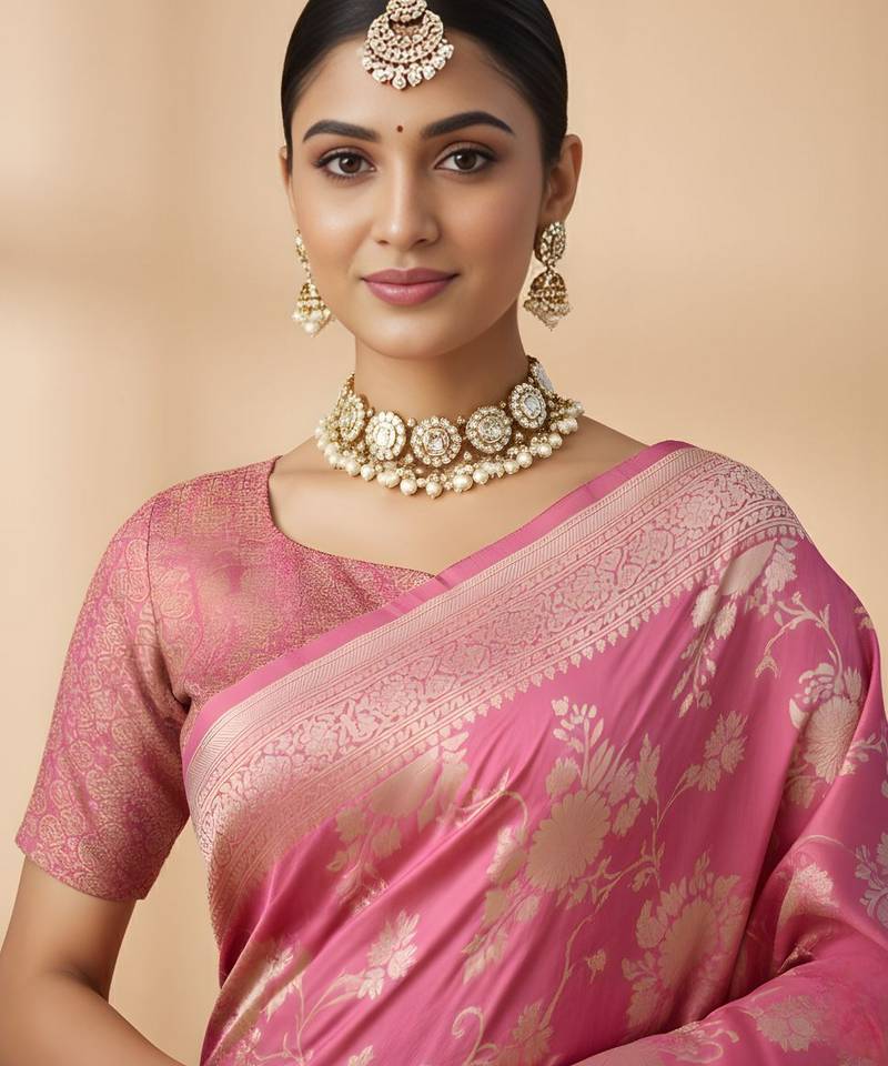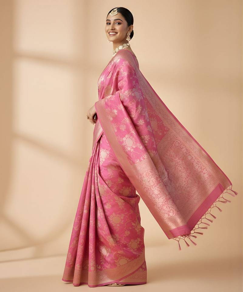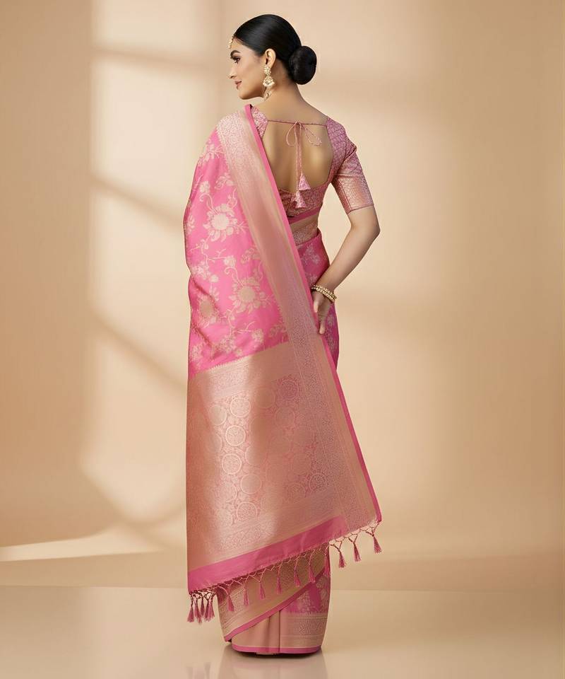 | Product Name | Pink Color Ethnic Crepe Silk Blend Fabric Woven Jacquard Designer Ceremonial Saree | |