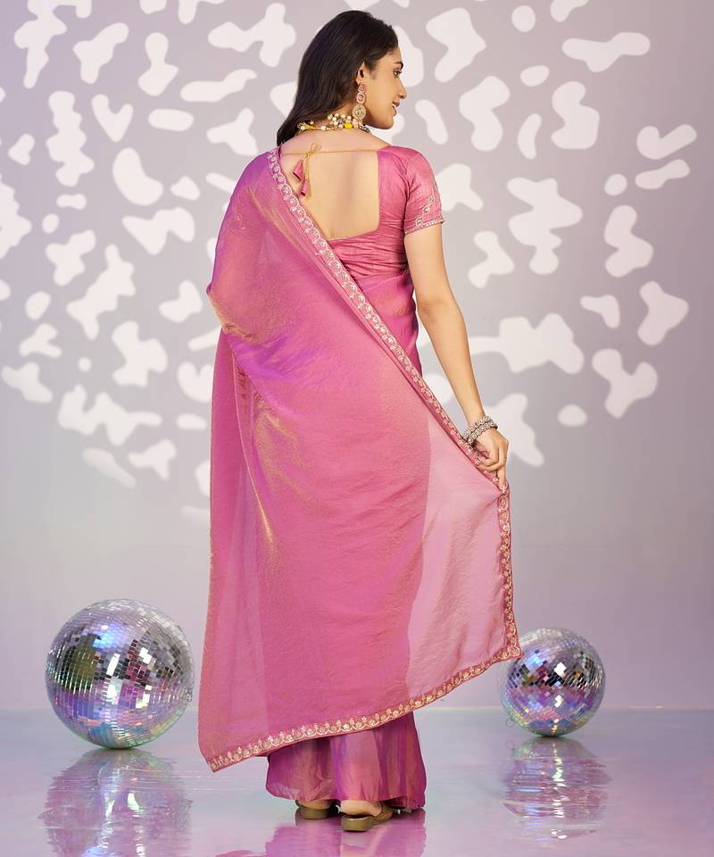 | Product Name | Pink Color Ethnic Embroidered Moss Chiffon Fabric Girlie Partywear Saree | |
