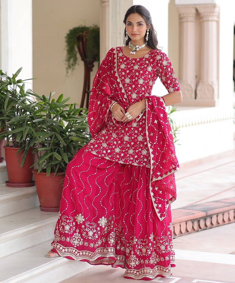 Pink color faux georgette fabric glamorous sequins designer partywear sharara dress
