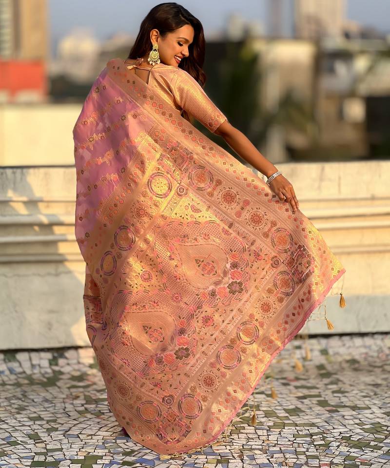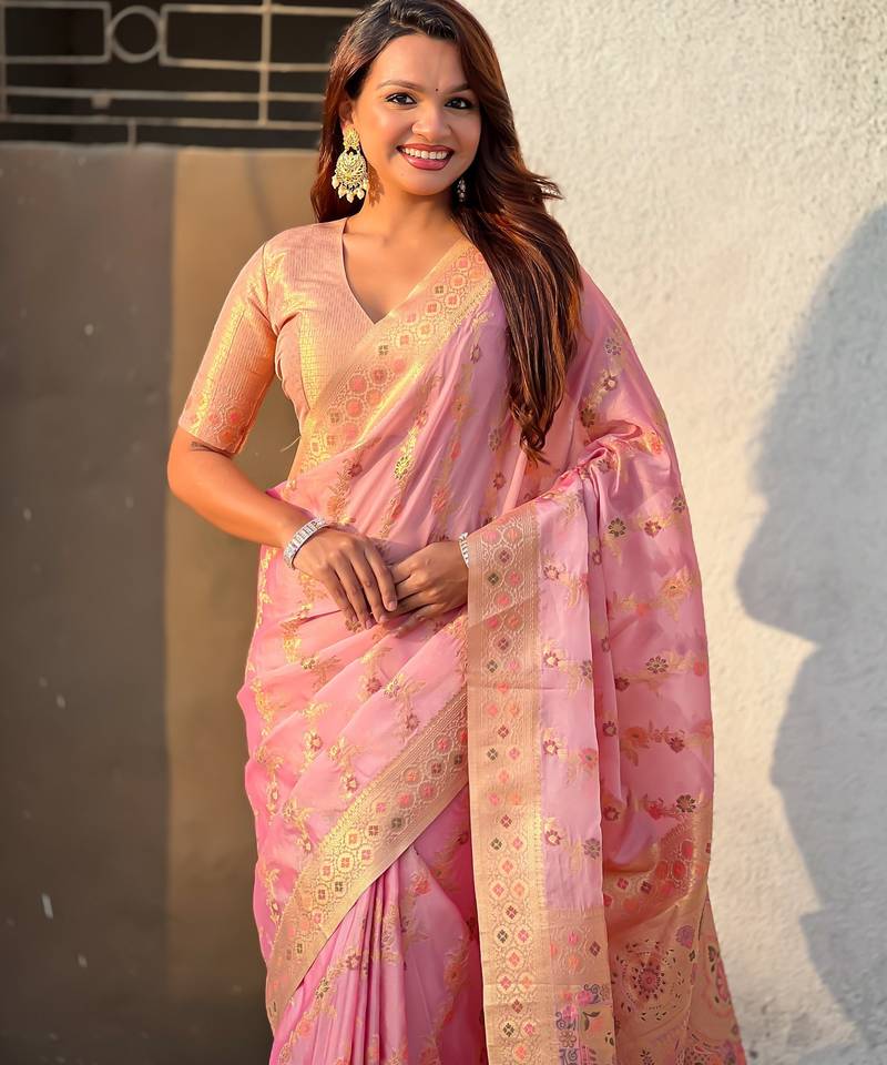 | Product Name | Pink Color Kora Silk Fabric Woven Leheria Designer Saree | |