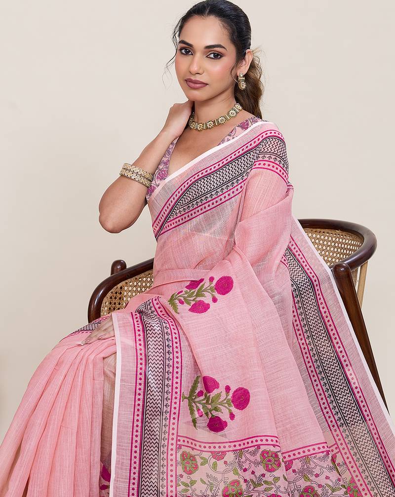 | Product Name | Pink Color Linen Silk Fabric Beautiful Partywear Saree | |