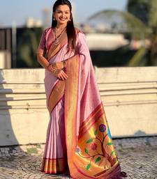 Pink color paithani silk fabric woven designer saree