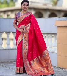 Pink color paithani silk blend fabric woven meenakari jacquard designer saree