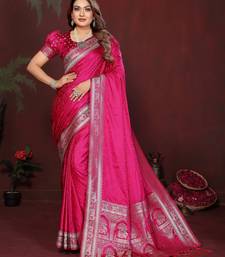 Pink color satin silk fabric woven jari designer sophisticated saree
