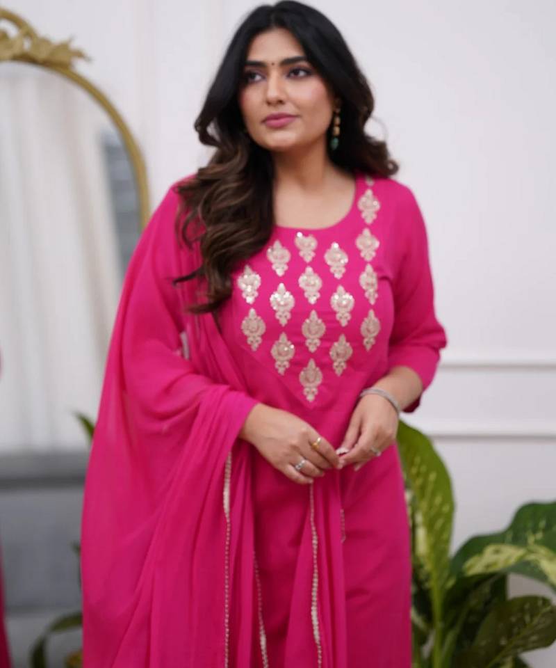 | Product Name | Pink Silk Blend Embroidered Partywear Salwar Kameez | |