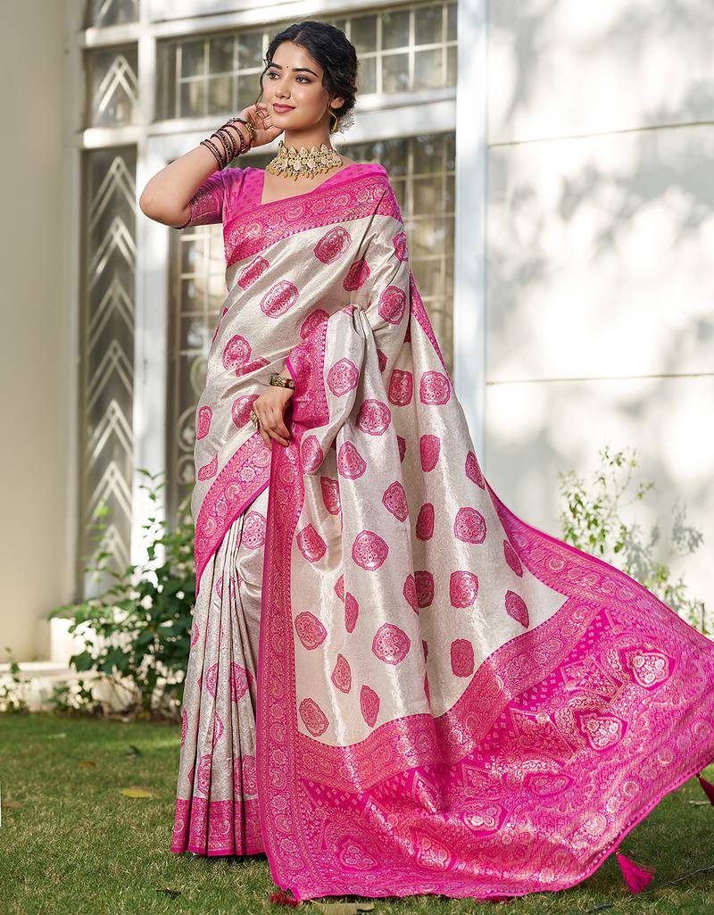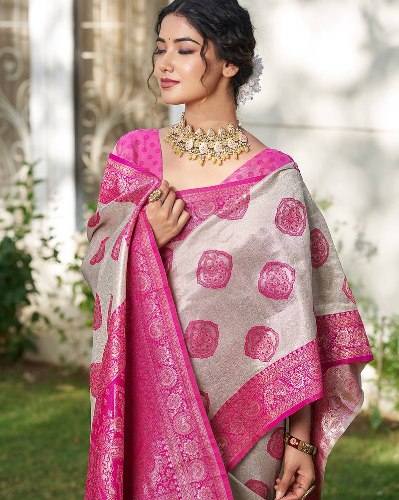 Pink color silk blend woven designer ethnic partywear saree