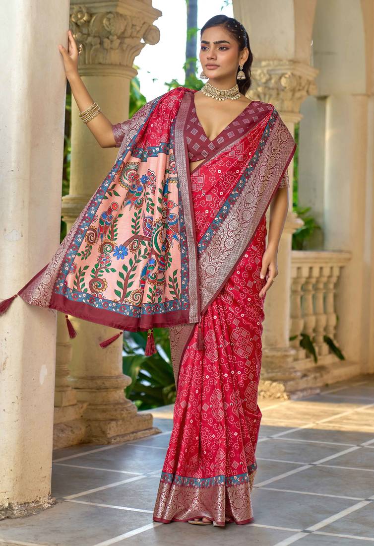| Product Name | Pink Color Silk Blend Blended Traditional Bandhani Ajrakh Printed Saree | |