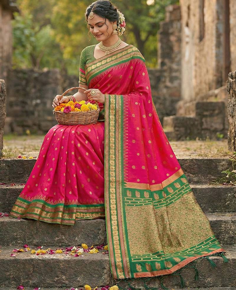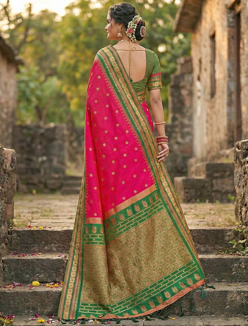 Pink color soft silk fabric woven designer graceful ethnic saree