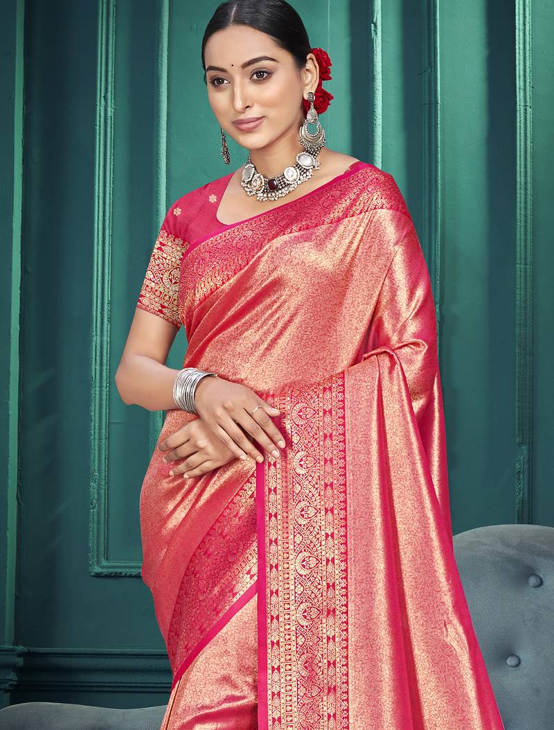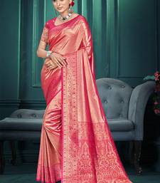 Pink color traditional kanjivaram silk blend blend saree with beautiful woven designer