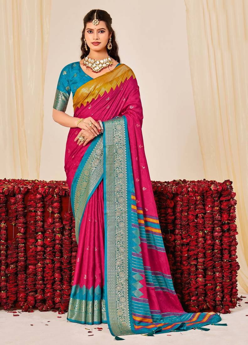 | Product Name | Pink Color Velvet Tussar Silk Blend Fabric Woven Saree With Smart Elegant Print | |