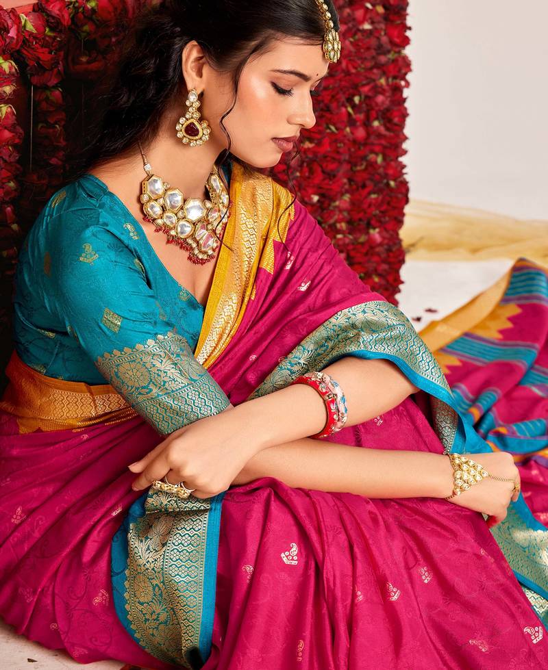 Pink color velvet tussar silk blend fabric woven saree with smart elegant print