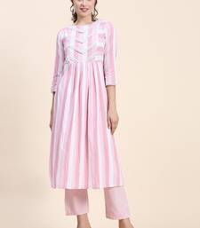 Pink colour ethnic readymade top bottom set for festive ethnic looks stitched