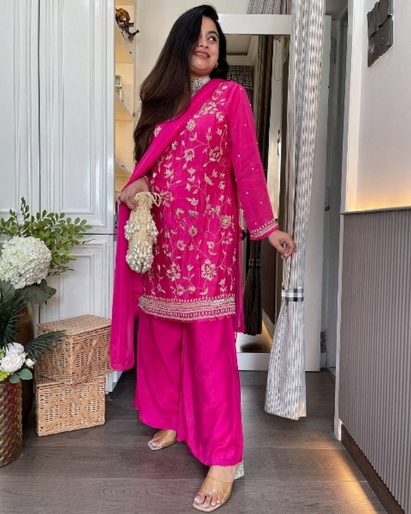 | • | Dupatta | : | Color- Pink / Fabric- Nazneen |