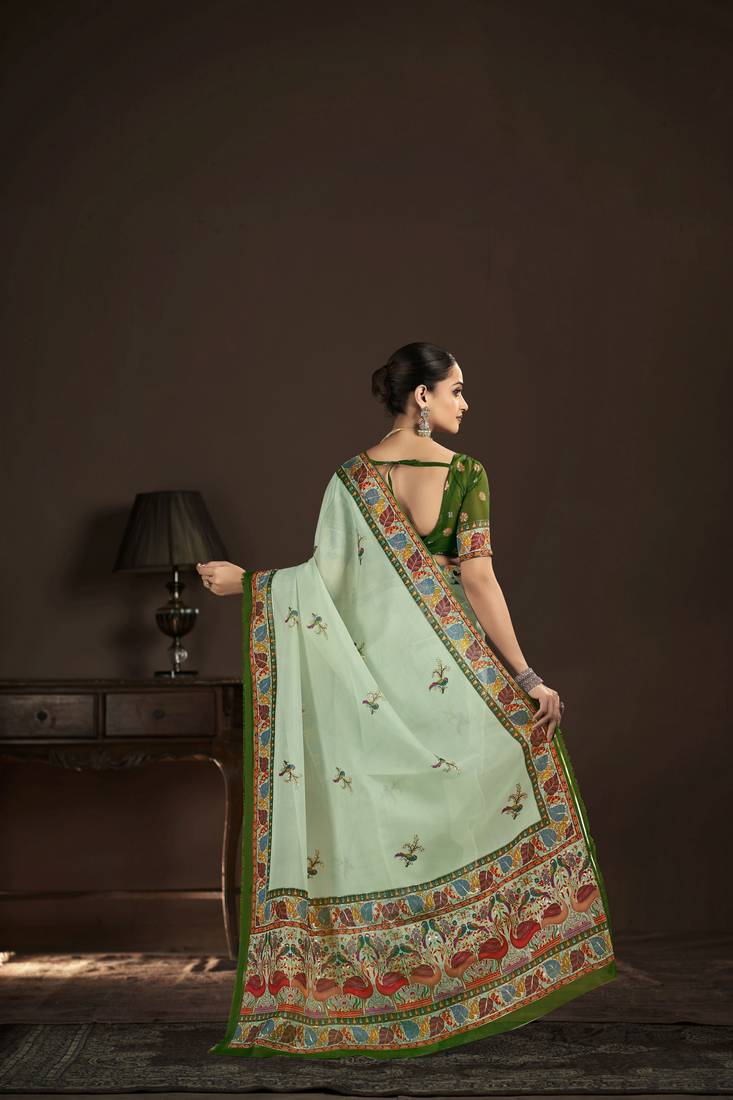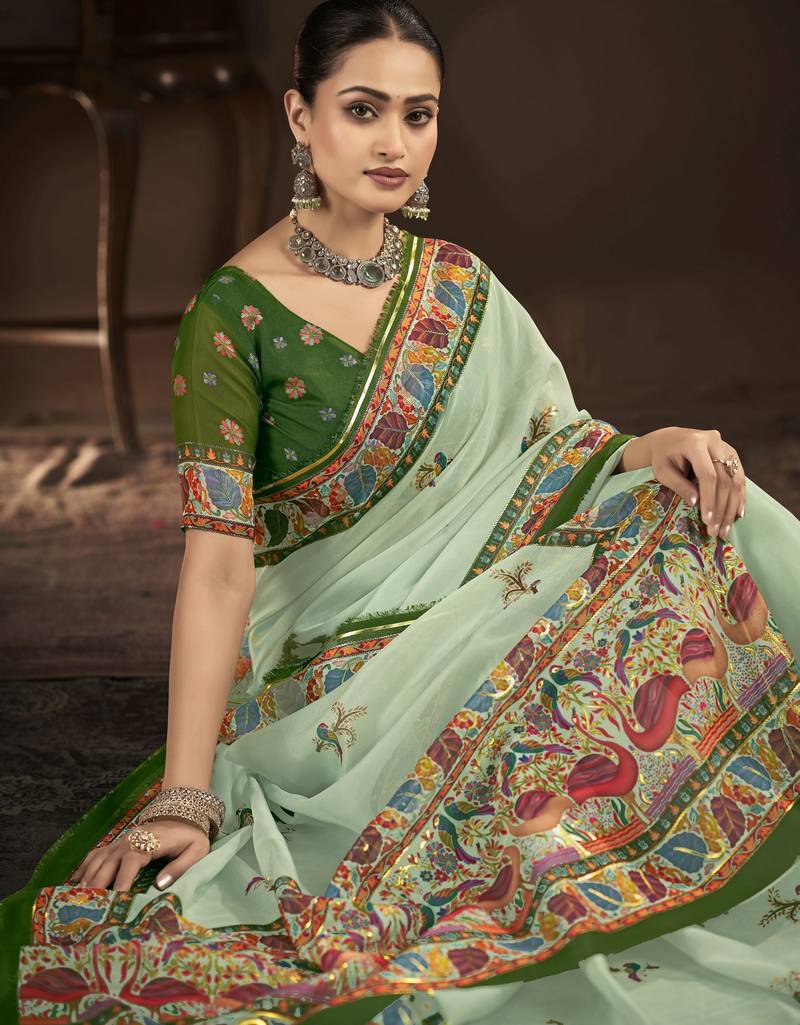 | Product Name | Pista Green Color Crepe Silk Blend Fabric Designer Foil Printed Saree | |