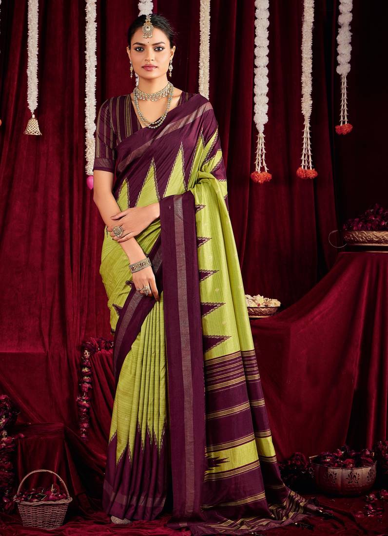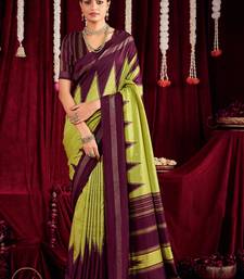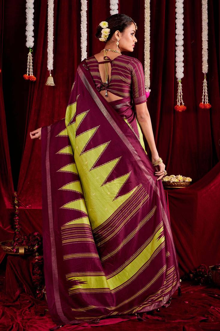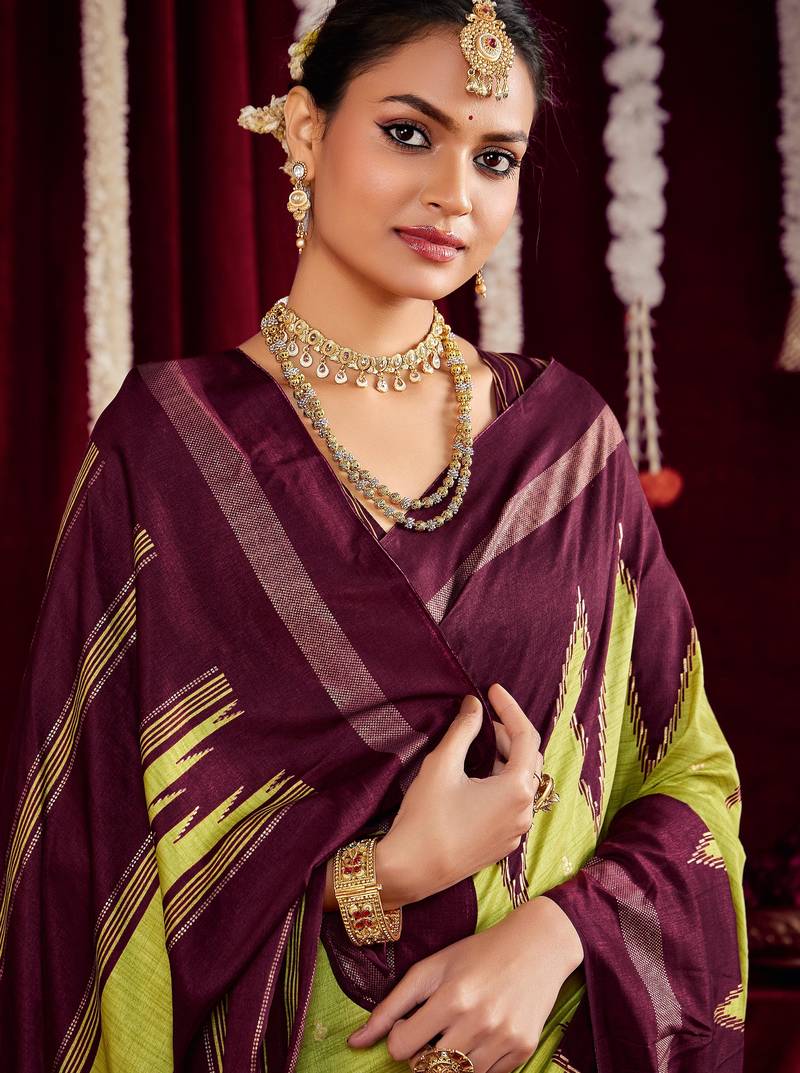 Pista green & wine color ikkat art silk fabric designer zig zag printed traditional party looks saree