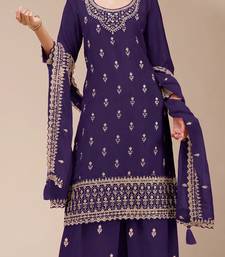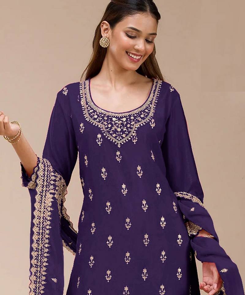 Purple color beautiful embroidered georgette fabric palazzo dress semi stitched