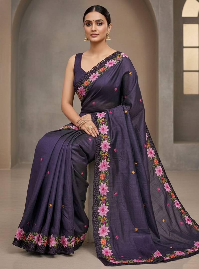 | • | Saree | : | Color- Purple / Fabric- Art Silk |
