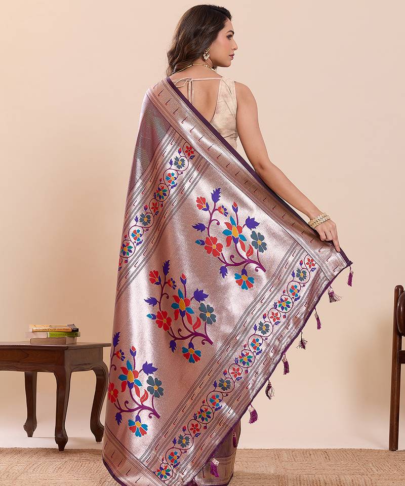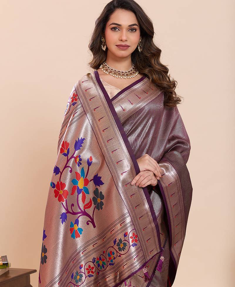 Purple color beautiful soft silk blend fabric woven designer saree