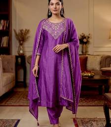 Purple color beautiful vichitra silk fabric designer ceremonial readymade suit