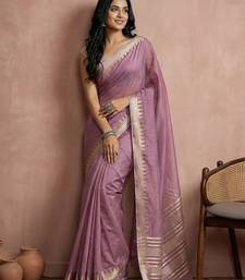 Purple color blended cotton woven designer ceremonial sober looks saree