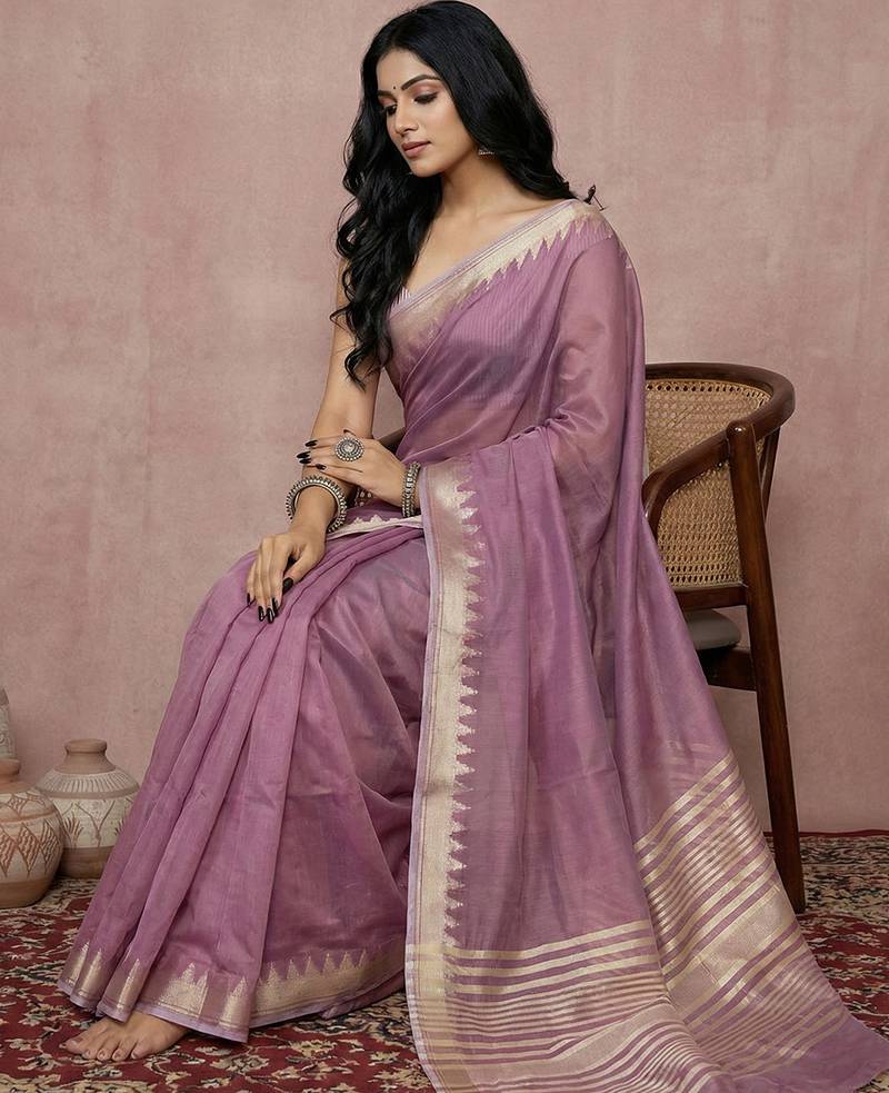 | Product Name | Purple Color Blended Cotton Woven Designer Ceremonial Sober Looks Saree | |