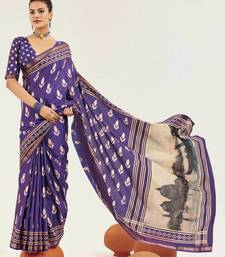 Purple color cotton art silk fabric designer digital printed saree